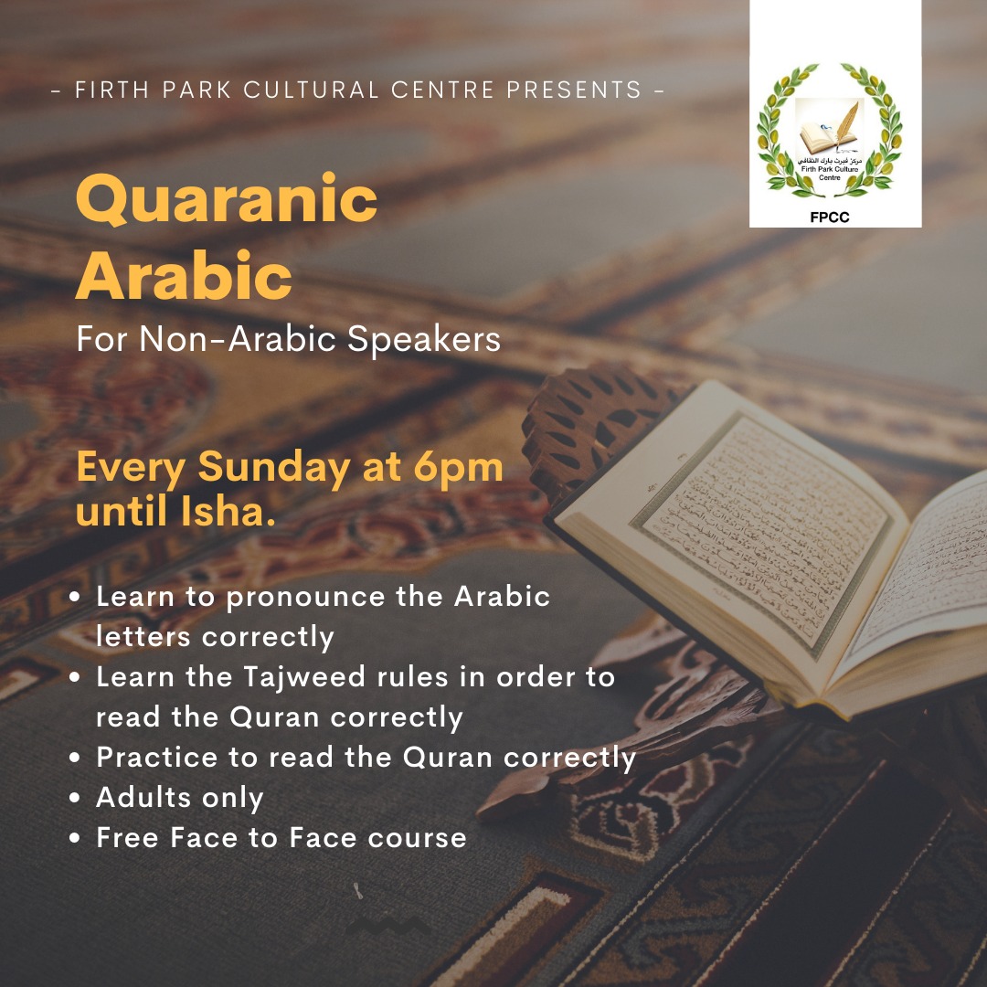 Adult Quranic Class for Non- Arabic Speakers. Every Sunday after Mughrib